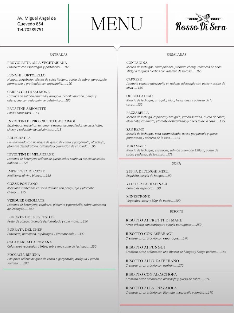 Introducing the menu at Rosso di Sera, a delightful Italian trattoria nestled in the heart of Coyoacan, Mexico City. This charming eatery has quickly garnered a reputation as a top destination for authentic Italian cuisine.